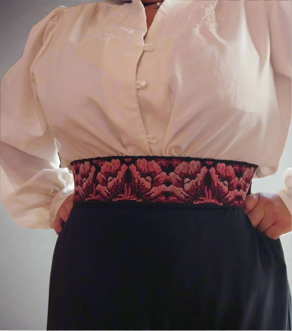 Bring elegance and heritage into your wardrobe with this artisan belt, lovingly handcrafted in Sololá, Guatemala. Featuring delicate pink roses embroidered onto a handwoven cotton base, this piece blends ancestral artistry with timeless feminine charm.